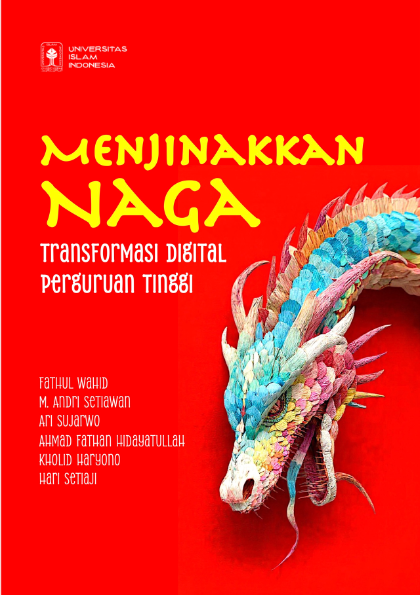 Judul buku ini, Menjinakkan Naga, kami pilih sebagai metafora atas relasi perguruan tinggi dengan teknologi digital. Teknologi ibarat seekor naga: besar, kuat, penuh potensi, tetapi juga membawa risiko jika tidak dipahami dan dikelola dengan baik. Naga bukan untuk ditakuti, melainkan untuk dipahami karakternya. Jika berhasil dijinakkan, ia dapat menjadi kekuatan yang mempercepat perjalanan. Jika diabaikan, ia dapat menjadi sumber persoalan. Secara garis besar, buku ini disusun mengikuti alur perjalanan transformasi meski tidak dapat dikatakan sepenuhnya runut. Bagian awal yang ditulis oleh Fathul Wahid mengajak pembaca memahami karakteristik perguruan tinggi, hubungan antara teknologi dan organisasi, serta pentingnya visi sebagai fondasi perubahan. Bagian ini menjadi landasan konseptual yang menjelaskan mengapa transformasi digital harus dimulai dari cara berpikir, bukan dari teknologi.